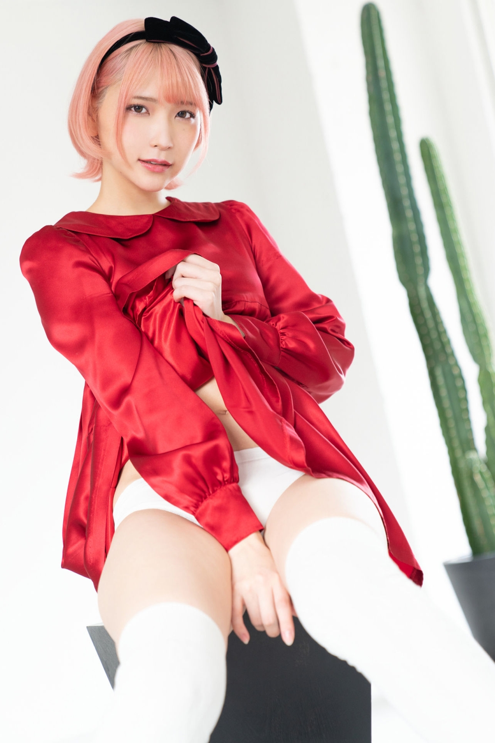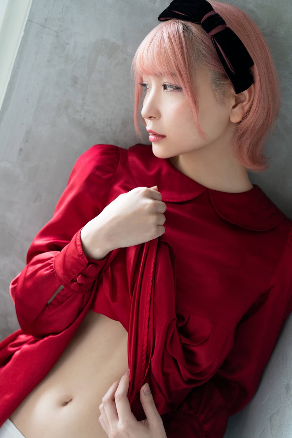 [着衣フェチ] 大人気の2.5次元モデル「あまつ様」!?清純な白と刺激的な赤に身を包んだ撮り下ろしつるつる光沢サテンワンピースの着衣フェチエロ画像 8枚