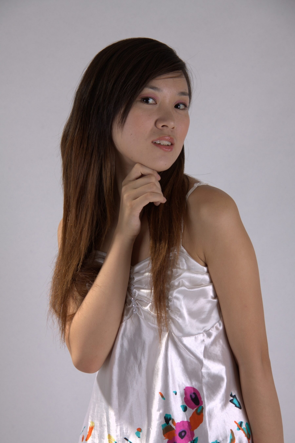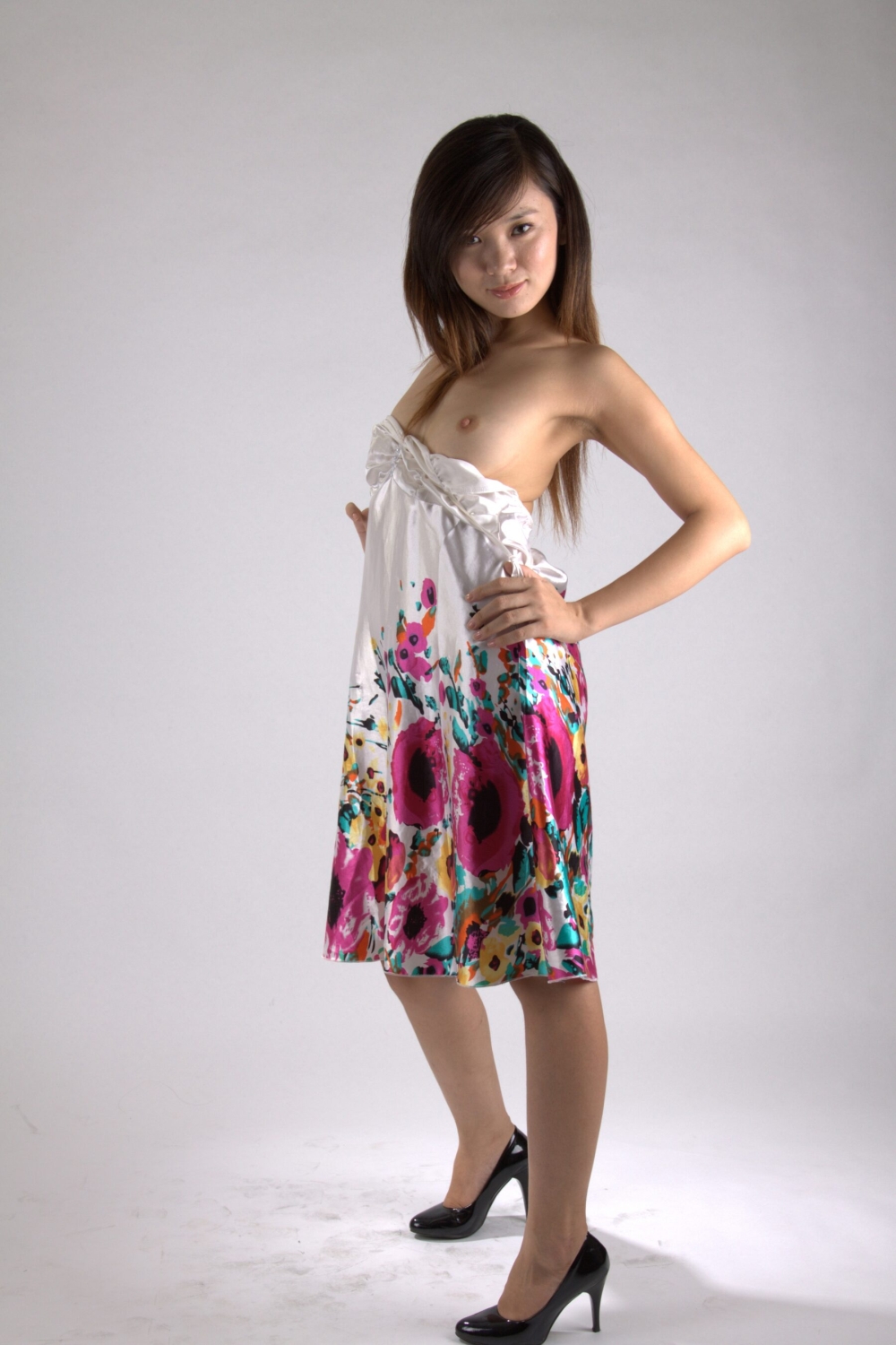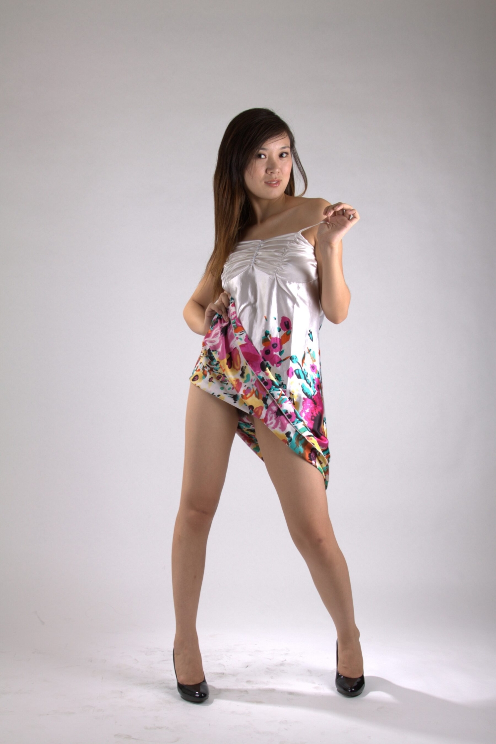 [ドレスフェチ] 芋っぽい娘はノーパンノーブラ!?生脚美脚につるつる光沢サテンワンピースドレスの着衣フェチエロ画像 52枚