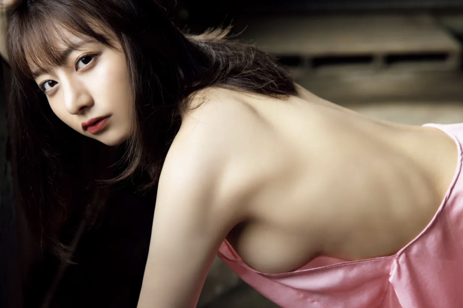[ドレスフェチ] 元AKB48メンバーの横から溢れるFカップ美巨乳!?勢いに乗る21歳のまさかの限界超えSEXYショットつるつる光沢サテンドレスのフェチエロ画像 4枚