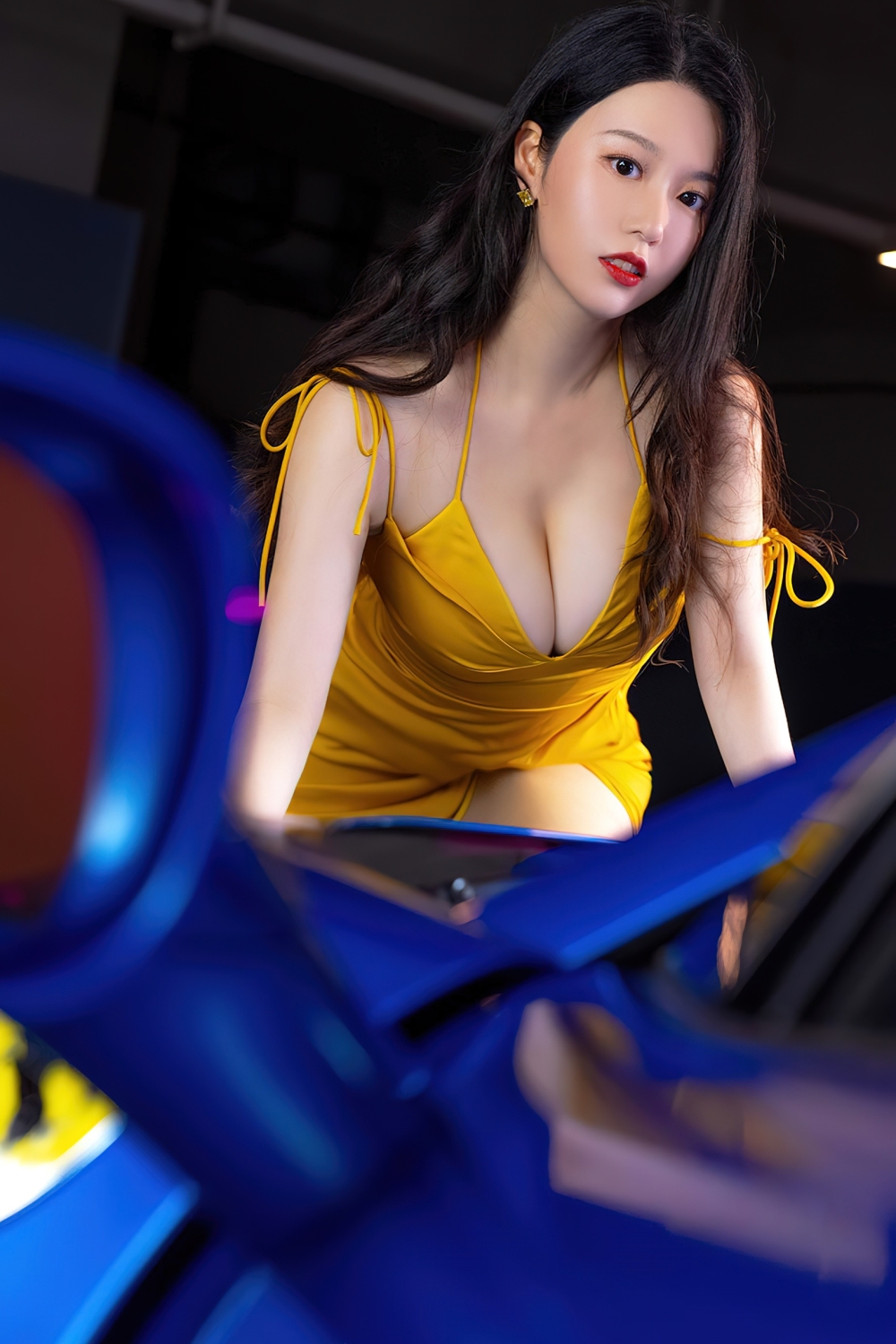 [ドレスフェチ] やはりフェラーリには美女が似合う!?生脚美脚とつるつる光沢サテンドレスの着衣フェチエロ画像 33枚