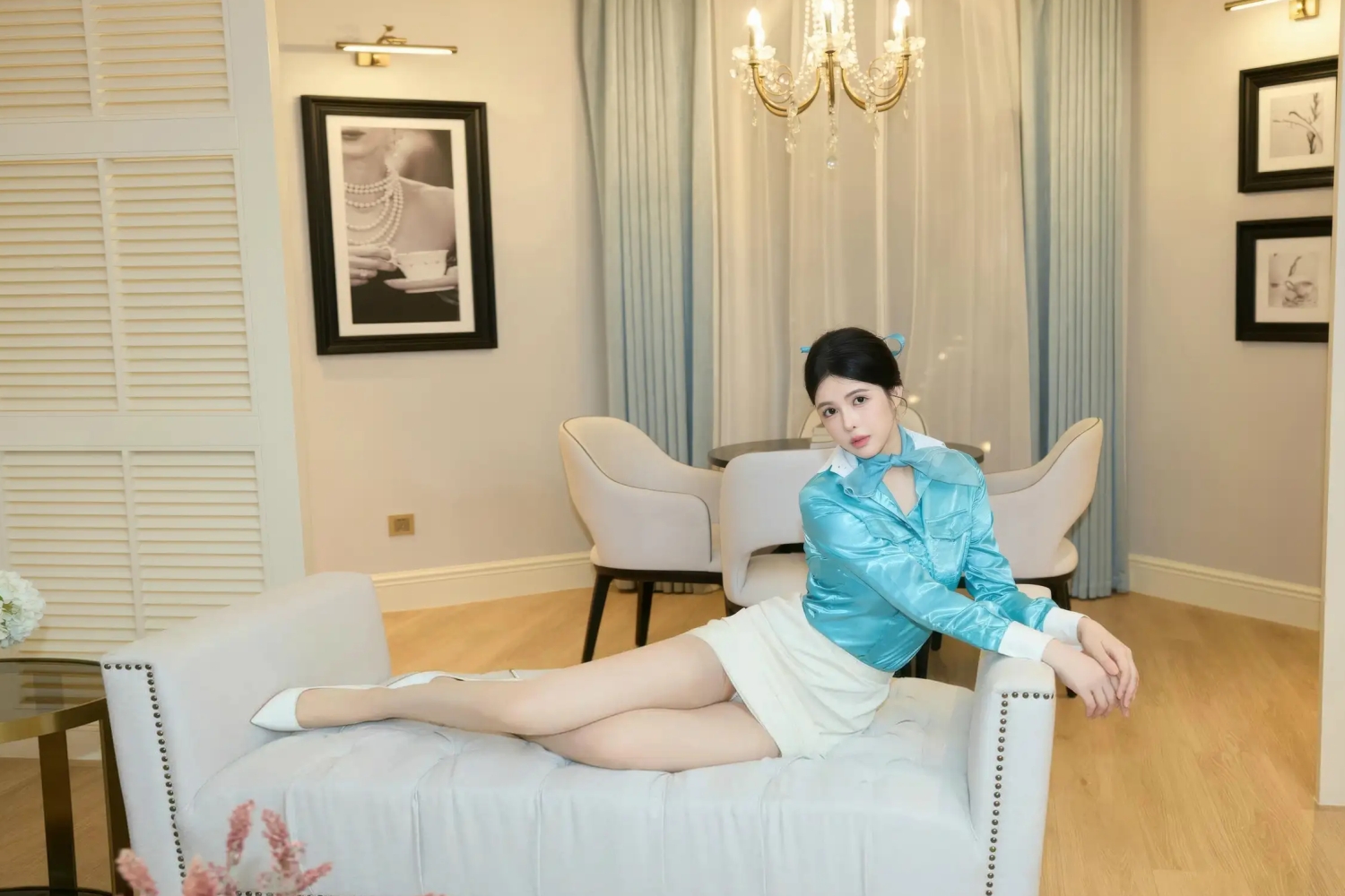 -Korean Air, ガーターストッキング, コリアンエアー, サテンブラウス, スチュワーデス, ストッキング, ストッキング美脚, タイトスカート, ハイヒール, 大韓航空制服, 客室乗務員, 开档黑丝, 方蕾蕾