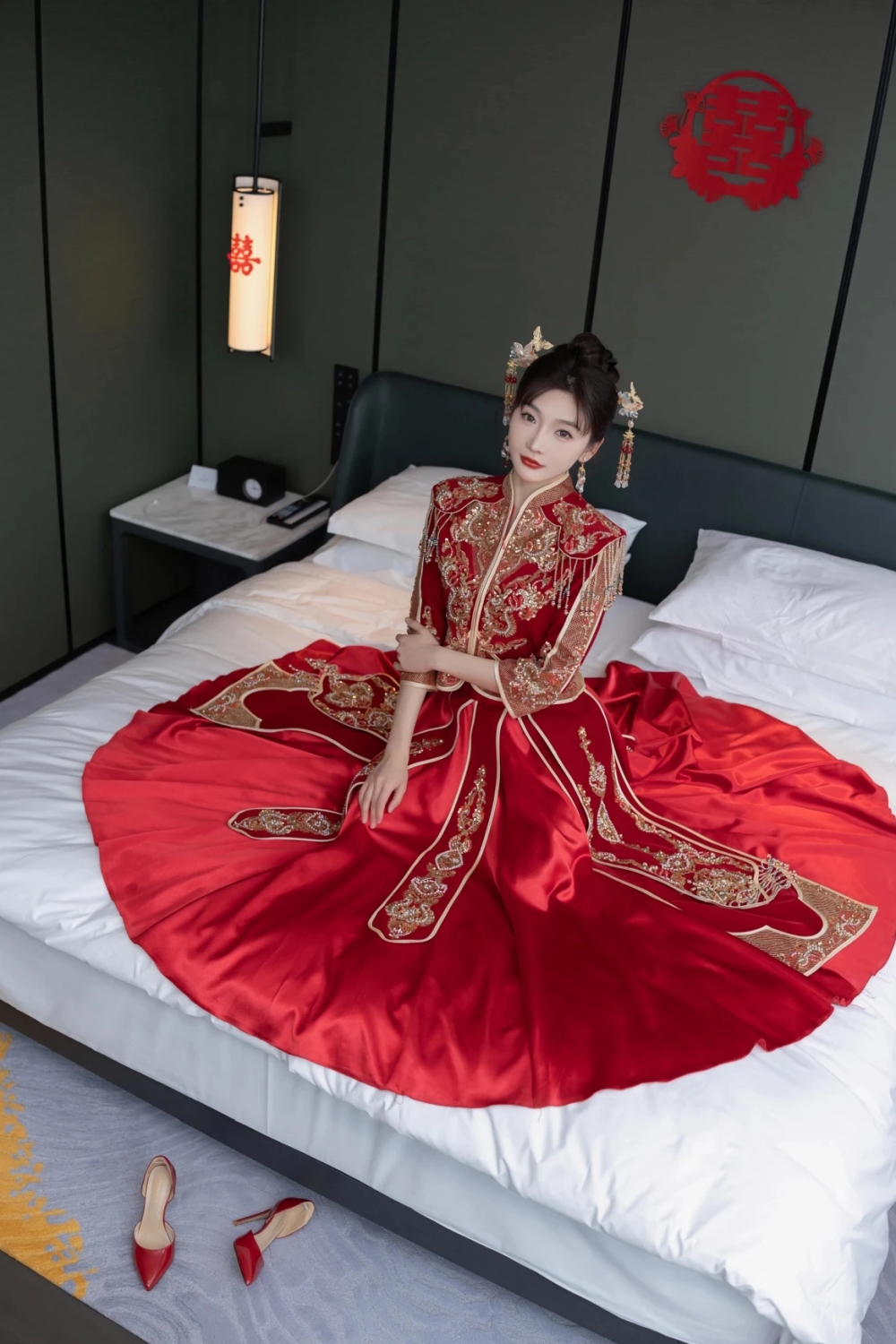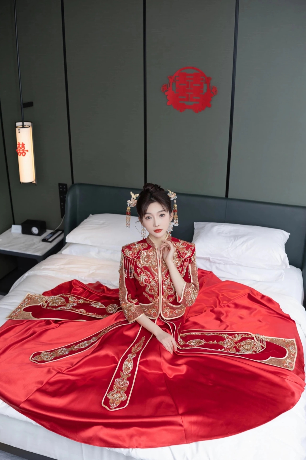 [着衣フェチ] 中華式初夜の過ごし方!?絢爛豪華なつるつる光沢サテン秀禾服の着衣フェチエロ画像 76枚